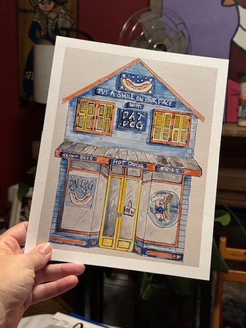 Categories: all the things Custom Paintings Greeting Cards Watercolors Acrylic Painting and Prints New Orleans Favorites Song Lyric Watercolor Stickers and Other Stuff Shop all the things | Custom Paintings | Greeting Cards | Watercolors | Acrylic Painting and Prints | New Orleans Favorites | Song Lyric Watercolor | Stickers and Other Stuff | 8x10 Custom Painting $80.00 5x7 Custom Painting $55.00 3x3 Tipitina's Watercolor Print $12.00 Dat Dog Watercolor Print $30.00 Old Bay Acrylic Painting $175.00 That's Hot Tabasco Painting $130.00 Sold Out Uptown Sticker $3.00 Commander's Palace Original Watercolor $60.00 Kingpin Original Watercolor 8x10 $75.00 Sold Out La Boulangerie Original Watercolor 8x10 $75.00 Creole Creamery Original Watercolor 8x10 $75.00 Dat Dog Original Watercolor 8x10 $75.00 Sold Out Prytania Uptown Theater Original Watercolor 8x10 $75.00 Sold Out Set of 4 Louisiana Collage Cards $15.00 Set of 4 Harry Potter Collage Cards $15.00 Set of 4 Pride and Prejudice Collage cards $15.00 Set of 4 Winnie the Pooh Collage Cards $15.00 All the Chips $175.00 Louisiana Hot Sauce $50.00 What's Happenin' Hot Stuff? $100.00 St. Louis Cathedral in the Moonlight $130.00 Sold Out Royal Pelican $100.00 Louisiana Sticker Pack $7.00 2 Harry Potter Stickers $5.00 All the Pride and Prejudice Stickers $10.00 Watercolor Shotgun House Sticker $3.00 Sassy Shrimp $10.00 Ben Harper Lyrics Watercolor $12.00 Mika Lyrics Watercolor $12.00 Charley Day Bird Law $12.00 Sold Out Lucille Bluth Quote Watercolor $12.00 Taylor Swift Lyrics Watercolor (A) $12.00 Black Crows Lyrics Watercolor $12.00 Harry Styles Lyrics Watercolor (C) $12.00 Harry Styles Lyrics Watercolor (B) $12.00 Harry Styles Lyrics Watercolor (A) $12.00 Taylor Swift Lyrics Original Watercolor $20.00 Bob Dylan Lyrics Watercolor $12.00 Green Day Lyrics Watercolor $12.00 Avett Brother's Lyrics Watercolor $12.00 Iron and Wine Lyrics Original Watercolor $20.00 Johnny And June Original Watercolor $12.00 Taylor Swift Lyrics Watercolor Greeting Card $8.00 Head and the Heart Lyrics Greeting card $8.00 Harry Styles Lyrics Greeting Card $8.00 Mika Lyrics Greeting Card $8.00 Who you callin' shrimp Magnet $8.00 Magnolia Sticker $3.00 Louisiana Shotgun Sticker $3.00 Pride and Prejudice 4 Collage Sticker $3.00 Pride and Prejudice 3 Collage Sticker $3.00 Pride and Prejudice 2 Collage Sticker $3.00 Pride and Prejudice 1 Collage Sticker $3.00 Harry Potter 2 Collage Sticker $3.00 Harry Potter 1 Collage Sticker $3.00 Who you Callin' Shrimp?! Watercolor Print $10.00 Look At Me Original Watercolor $60.00 Shotgun House Variation 2 Original Watercolor 4x6 (Portrait) $10.00 Shotgun House 1 original Watercolor 4x6 (Landscape) $10.00 Venice View 2 Watercolor Prints $15.00 I'm a Little Tea Pot Original Watercolor 8x10 $60.00